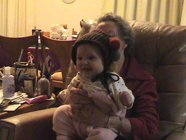 We have this hat that was at my Grandmothers. I can't remember whose it was originally. I will have to ask my mother. It was kept in Memaw's dresser...bottom middle drawer forever. It's a dark chocolate hat of yarn with several large yarn "balls" coming off of both sides of the hat. I believe there is a picture of both Bell girls, and the grandkids in the hat. I just found the one of Kaytlnn in it! I wanted to post, not only share with family now...but so that it is in an easy to reference place in the future as well.